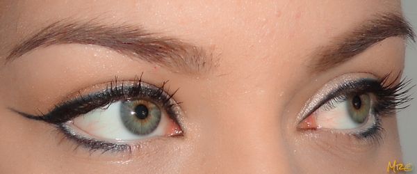 Ela é uma das únicas que usam um super delineado, mas a sombra é areia!!! Não tem nada de preto, de cinza, de nada.. só esse delineado, que tem o diferencial de um azul por baixo.